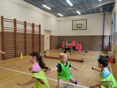 Některé třídy z 1 stupně se zapojily v 1.pololetí letošního školního roku do projektu "Trenéři do škol" - každý týden přijde do hodiny tělesné výchovy trenér, který předvede dětem nějaký sport. Za pololetí se děti seznámí se třemi sporty. Cílem je, aby se všechny děti do hodin aktivně zapojily, se sportem se seznámily a tělesná výchhova je bavila.