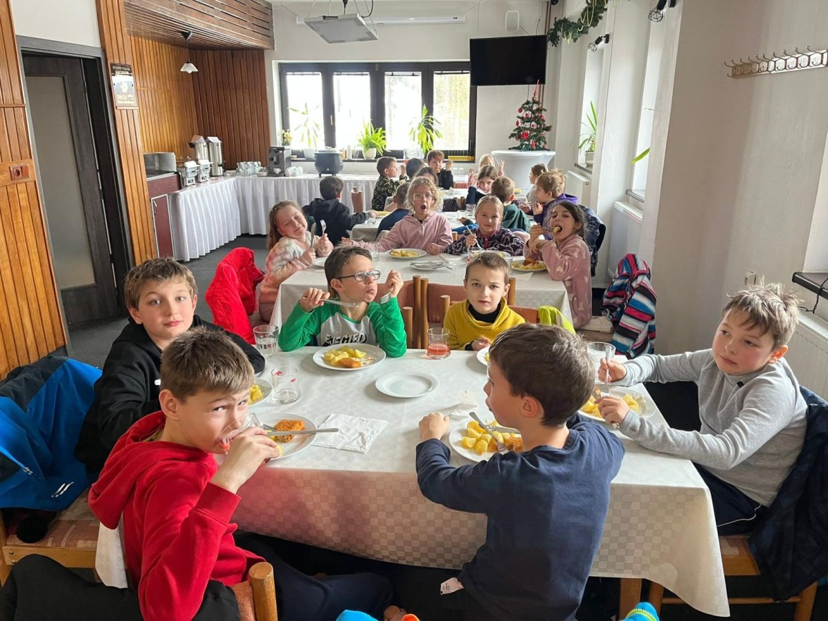 Opět výborné jídlo a parádní lyžování. Odpoledne bazén.