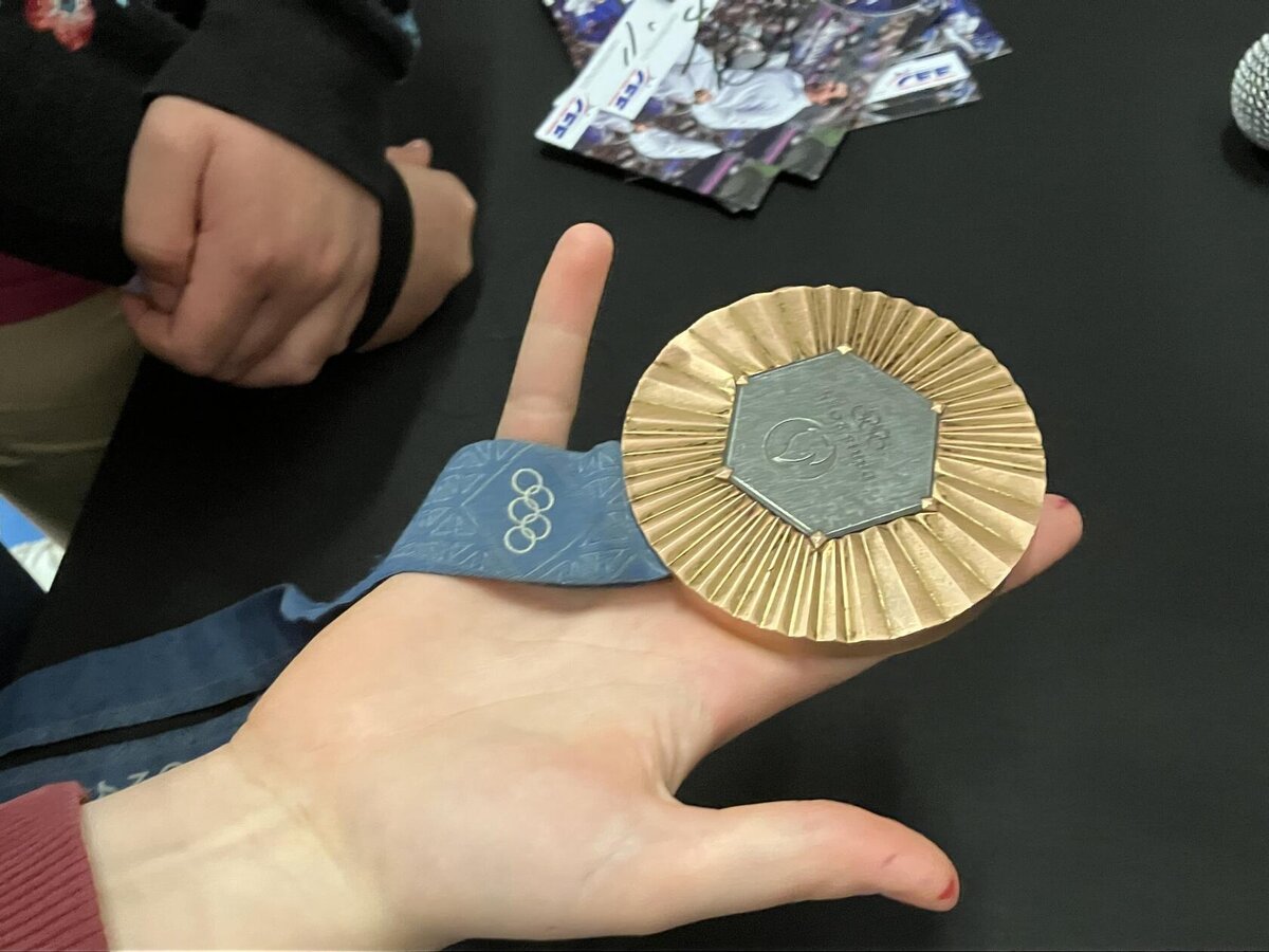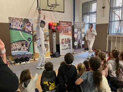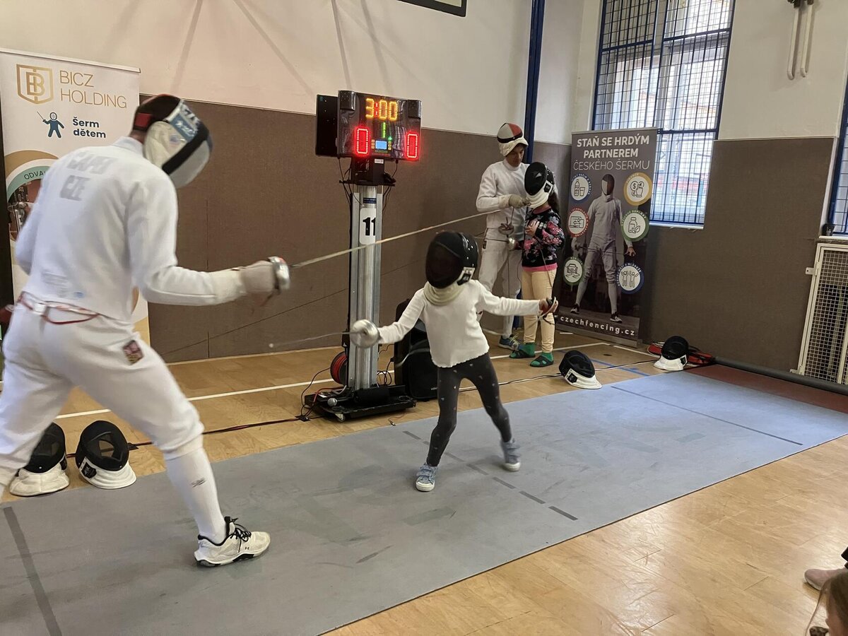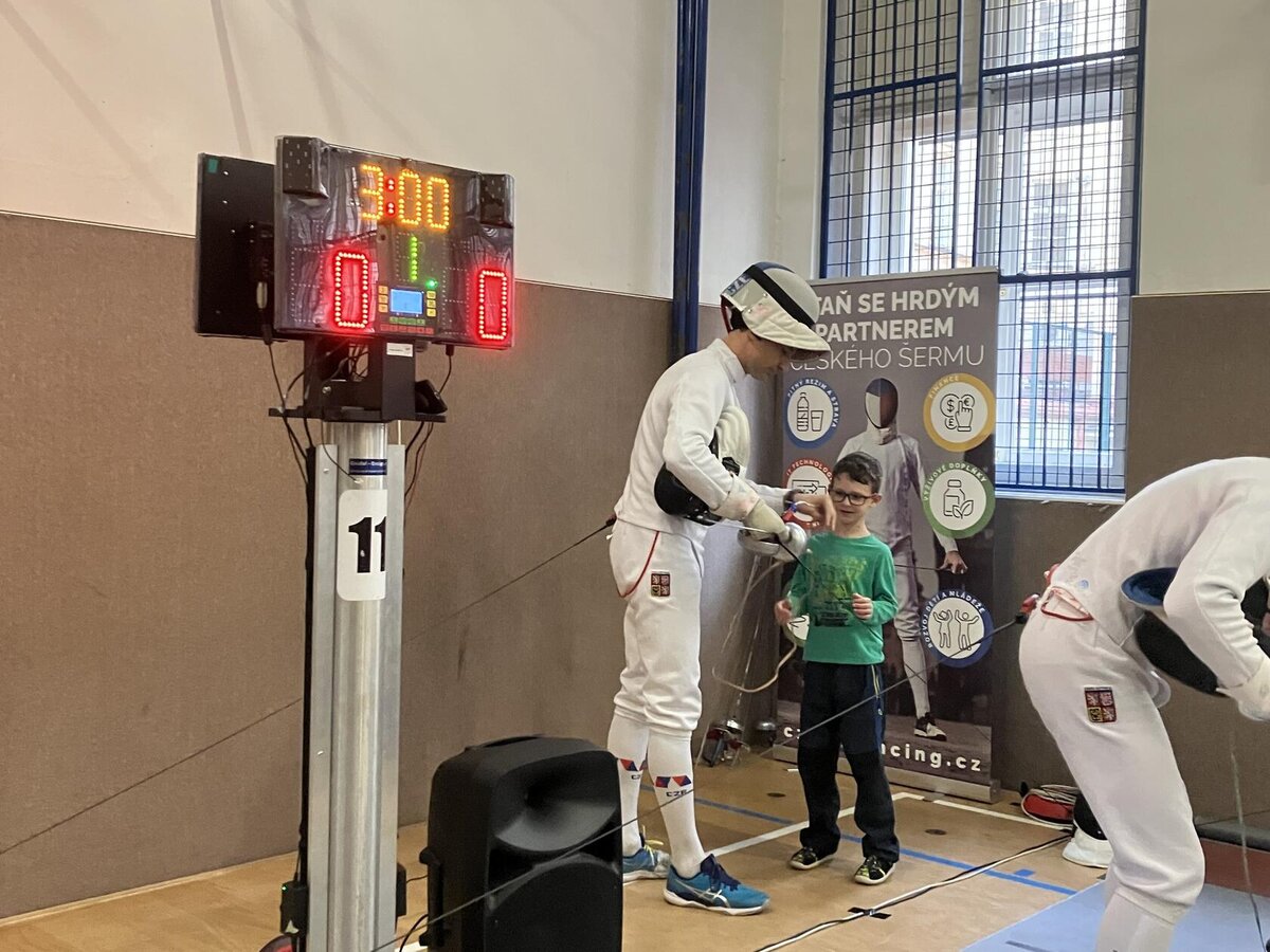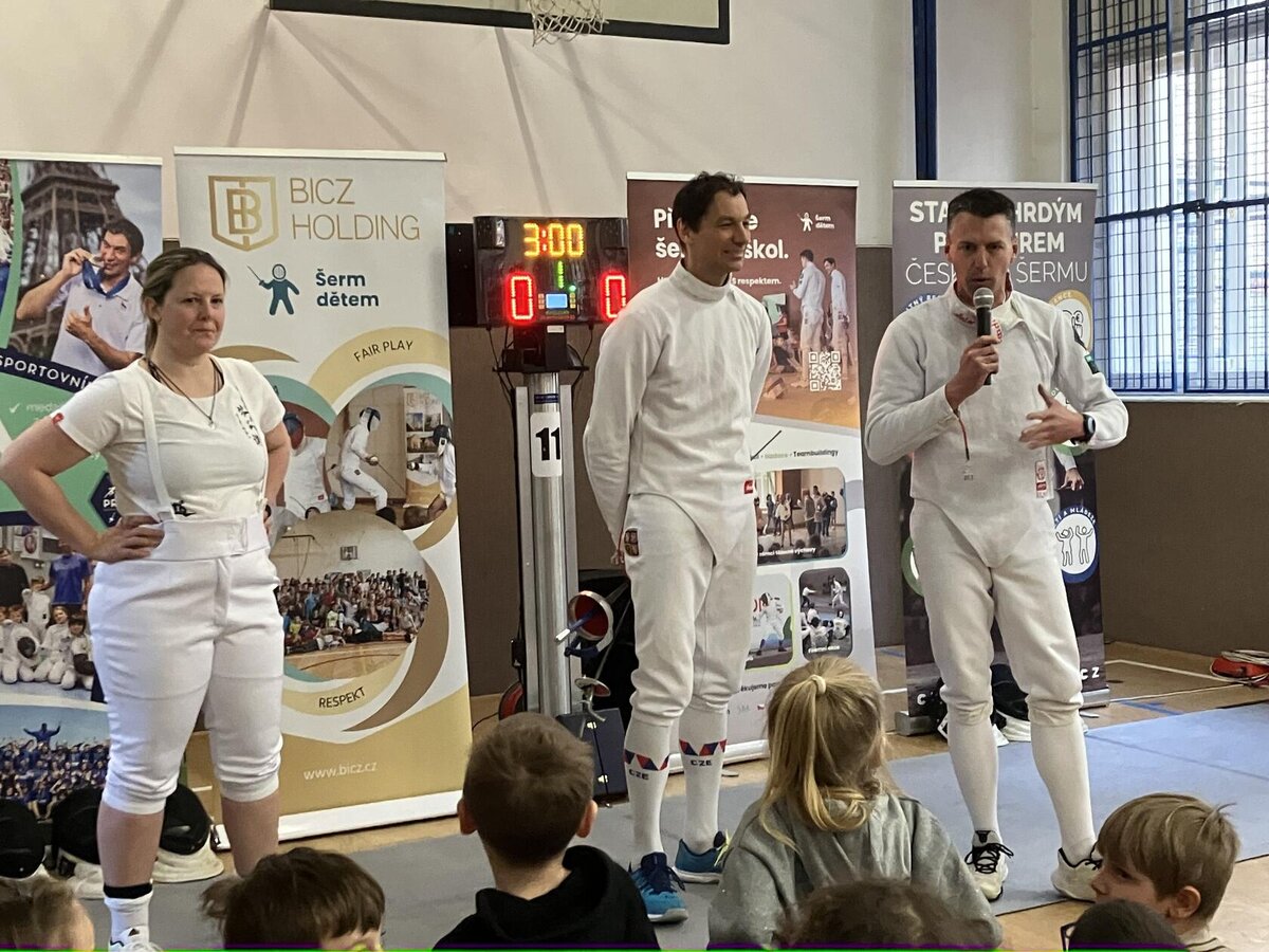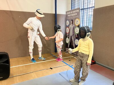 Děti si to moc užily. Mohly šermovat, viděly medaile a dokonce i tu olympijskou bronzovou, která je hodně těžká. Vše mohly vzít do ruky a vyzkoušet. Bylo to moc fajn.