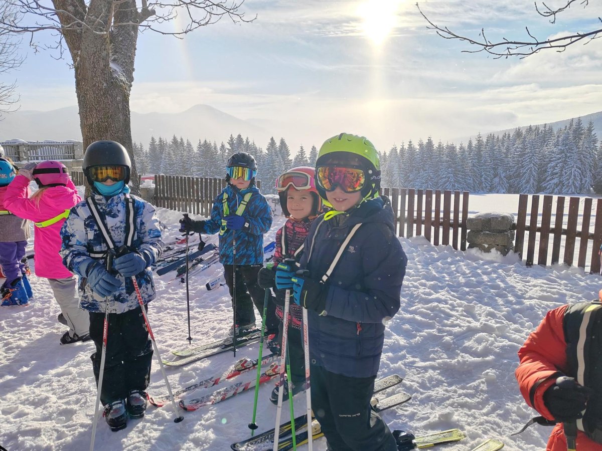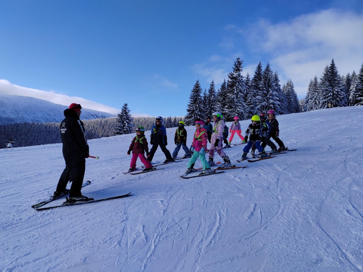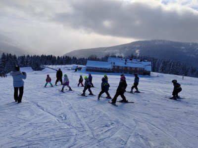 1.B, 2.A Medvědí bouda - všichni už jsou lyžaři