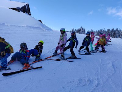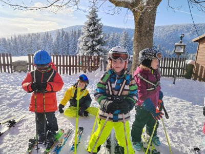 Dnes jsme opět všichni trénovali na svahu za chalupou. Děti, které včera staly poprvé na lyžích, dnes již sjížděly sjezdovku u chalupy a dokázaly vyjet na vleku. Všichni dělají velké pokroky a lyžování jim jde.