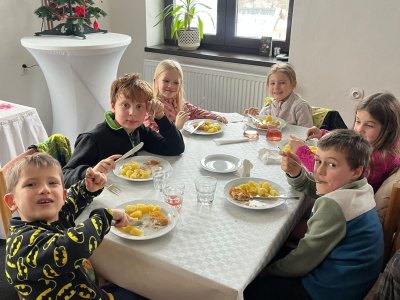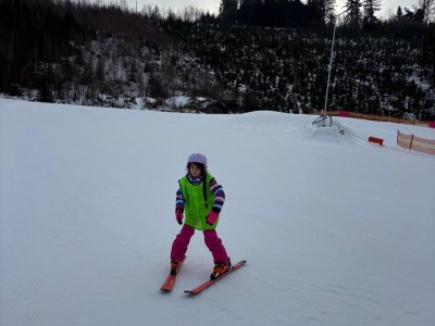 Opět výborné jídlo a parádní lyžování. Odpoledne bazén.