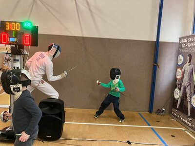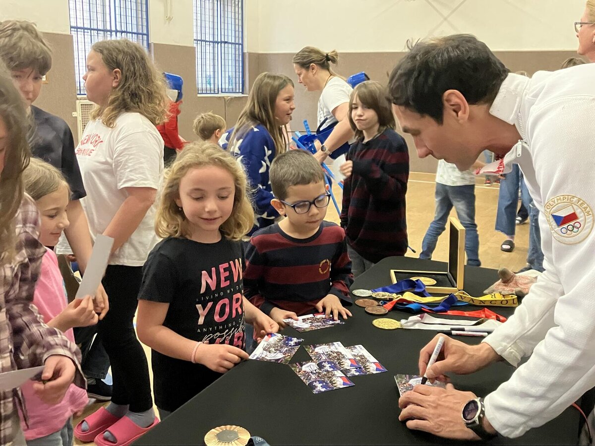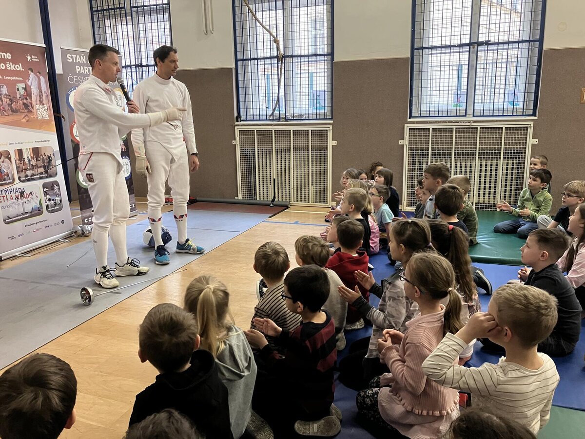 Děti si to moc užily. Mohly šermovat, viděly medaile a dokonce i tu olympijskou bronzovou, která je hodně těžká. Vše mohly vzít do ruky a vyzkoušet. Bylo to moc fajn.